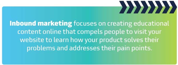 If you're new to inbound marketing, hop over to this article for an overview of inbound marketing. For those familiar with inbound marketing, you know it's a less intrusive method of reaching today's buyers. It focuses on creating educational content online that compels people to visit your website to learn how your product solves their problems and addresses their pain points. Inbound marketing not only draws in visitors, but it engages with them through every stage of the buyer's journey, and it continues to delight them even after they become customers.